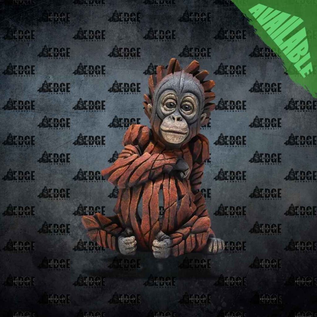 Edge Sculpture Baby Orangutan by Matt Buckley  Still the number one most popular piece, and guaranteed to make anyone who seems him smile, he sits happily on his own, or sitting in the arms of his mother, see the attached image for an example. 97% of their DNA matches ours, intelligent, full of fun and good humour, this sculpture embodies all of that, and just looking at him is guaranteed to bring you joy, if you are looking for a special gift for someone, this is a guaranteed success.