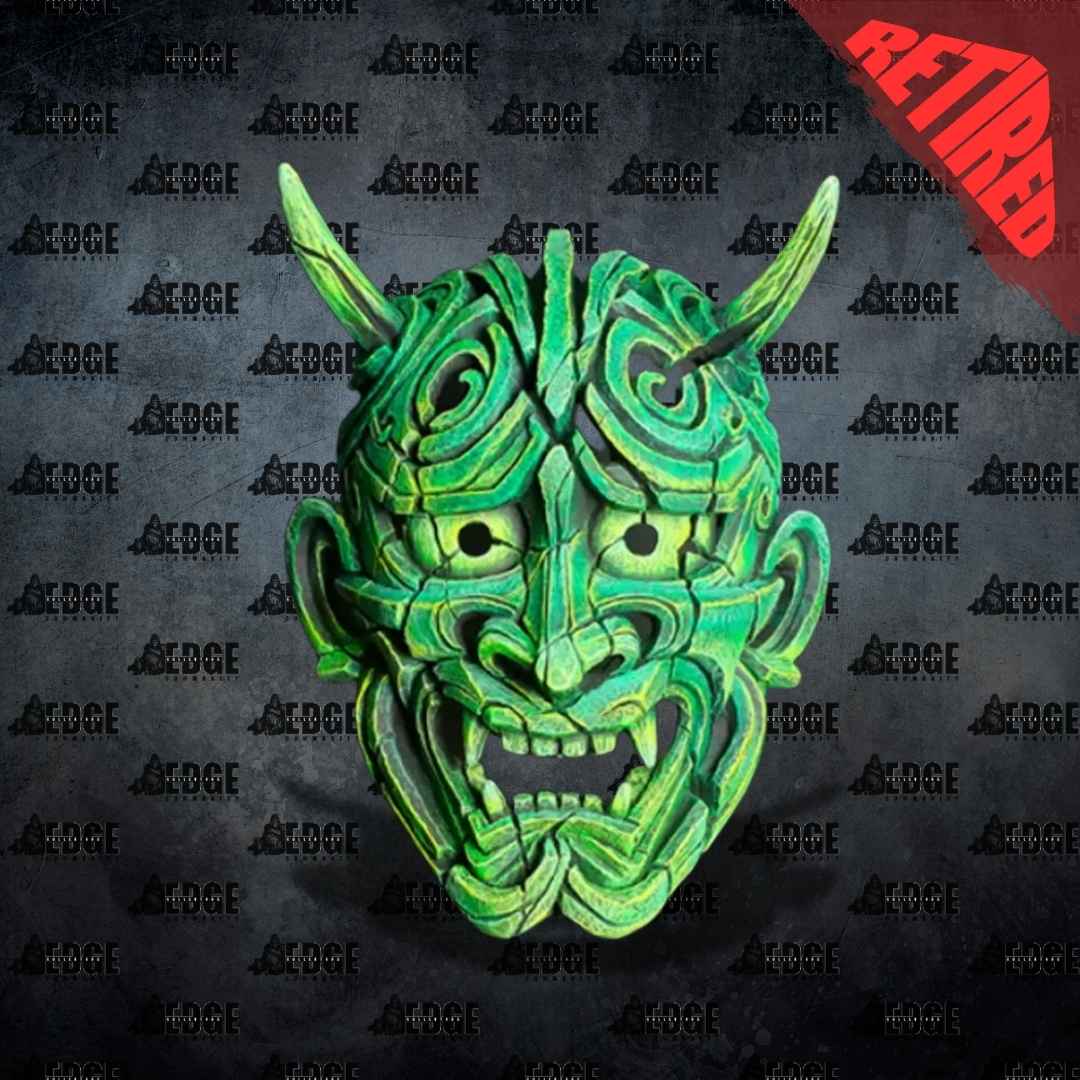 Japanese Hannya Mask – Jade Green is a recent addition to the Edge Sculpture range. This imposing mask has a deep rich history in Japanese culture. It first appeared in a well-known variety of traditional Japanese musical theatre known as “Noh Theatre” in the 14th century. The actors in Noh plays would tell stories through gestures while adorned in intricate masks such as the one featured here.