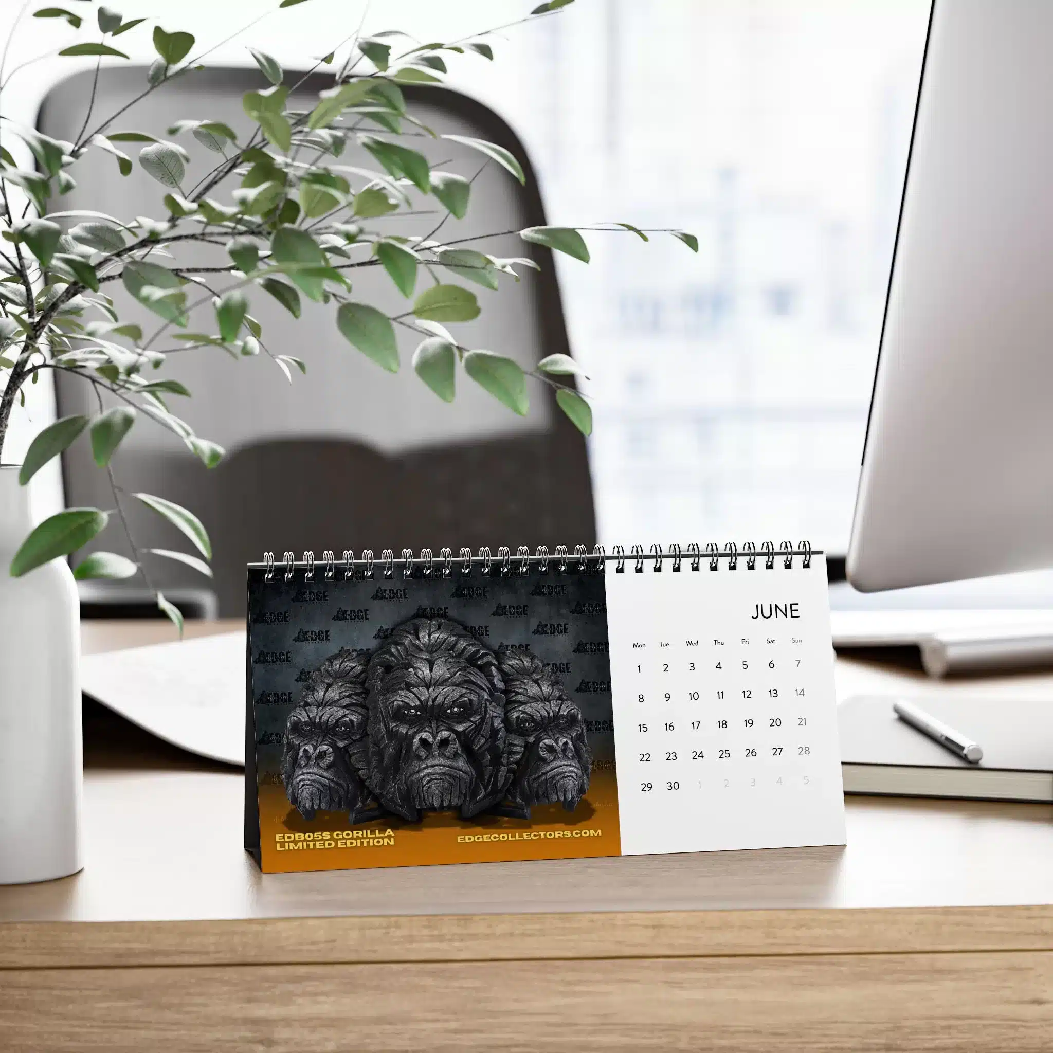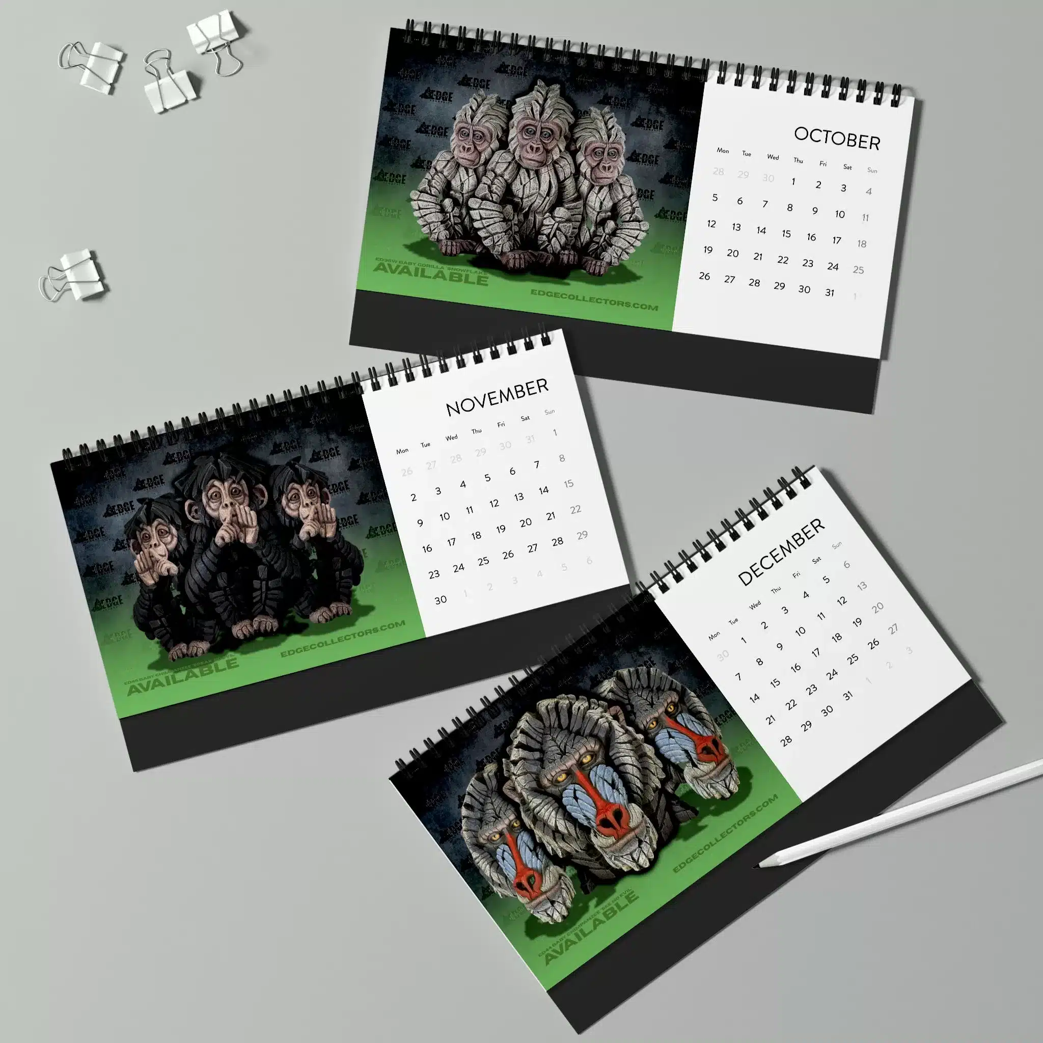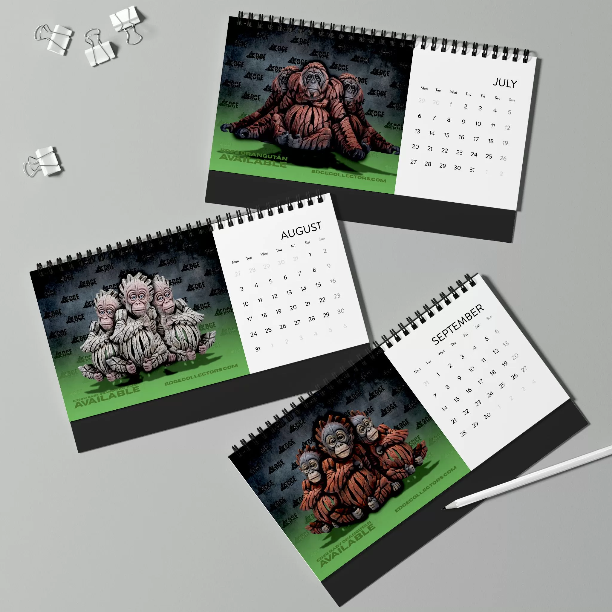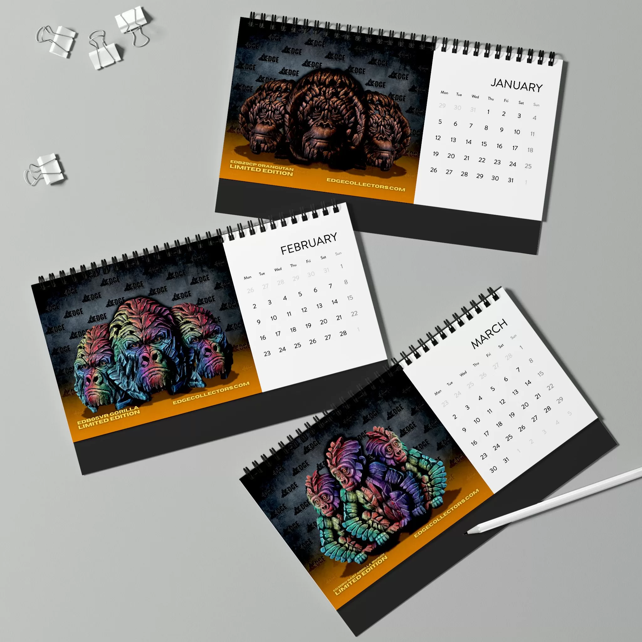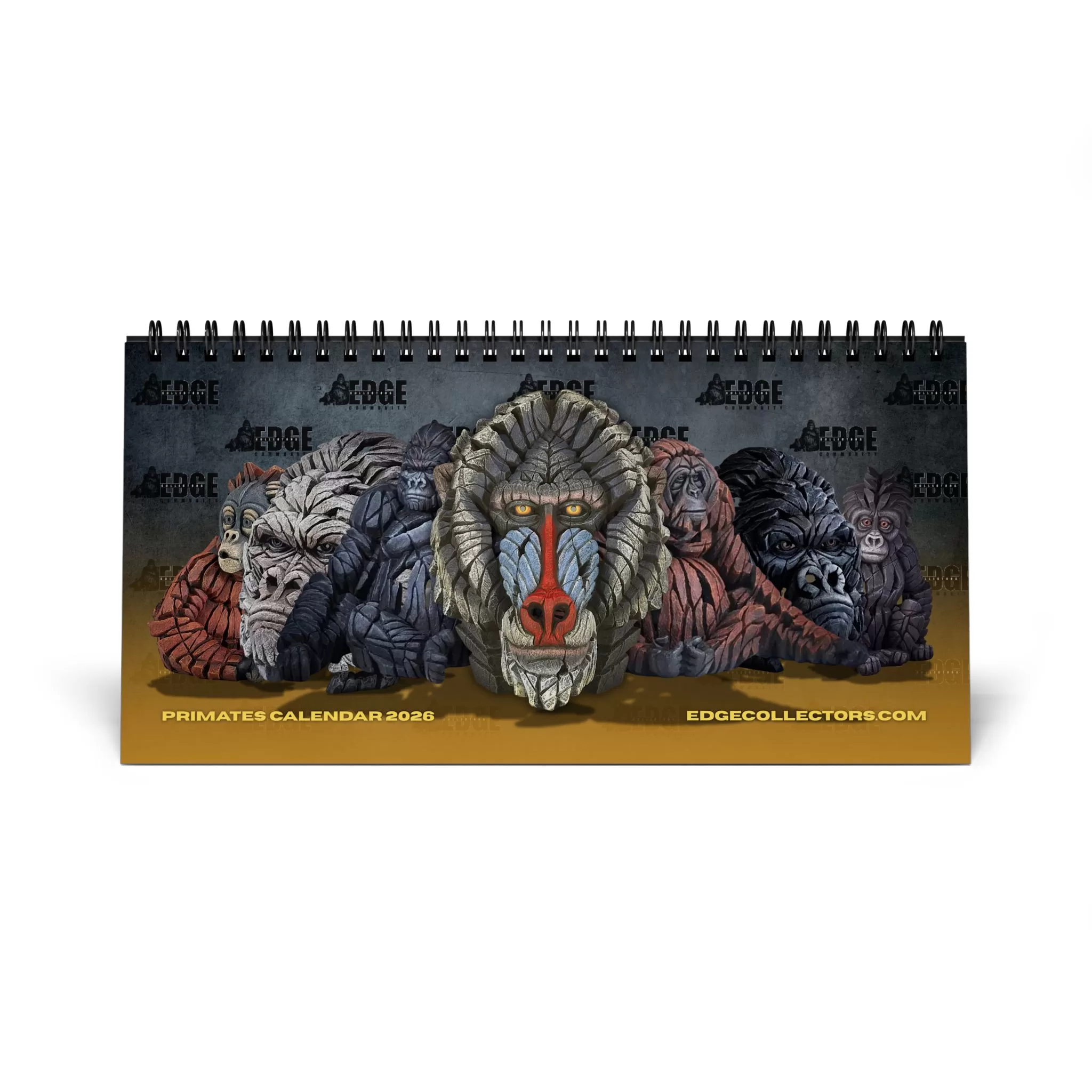 Celebrate the intelligence, emotion, and power of the animal kingdom’s closest relatives with the Edge Sculpture Primates Calendar. Featuring Matt Buckley’s iconic sculptures of gorillas, orangutans, chimpanzees, and more — each month reveals a stunning portrait that captures the essence of these remarkable creatures.