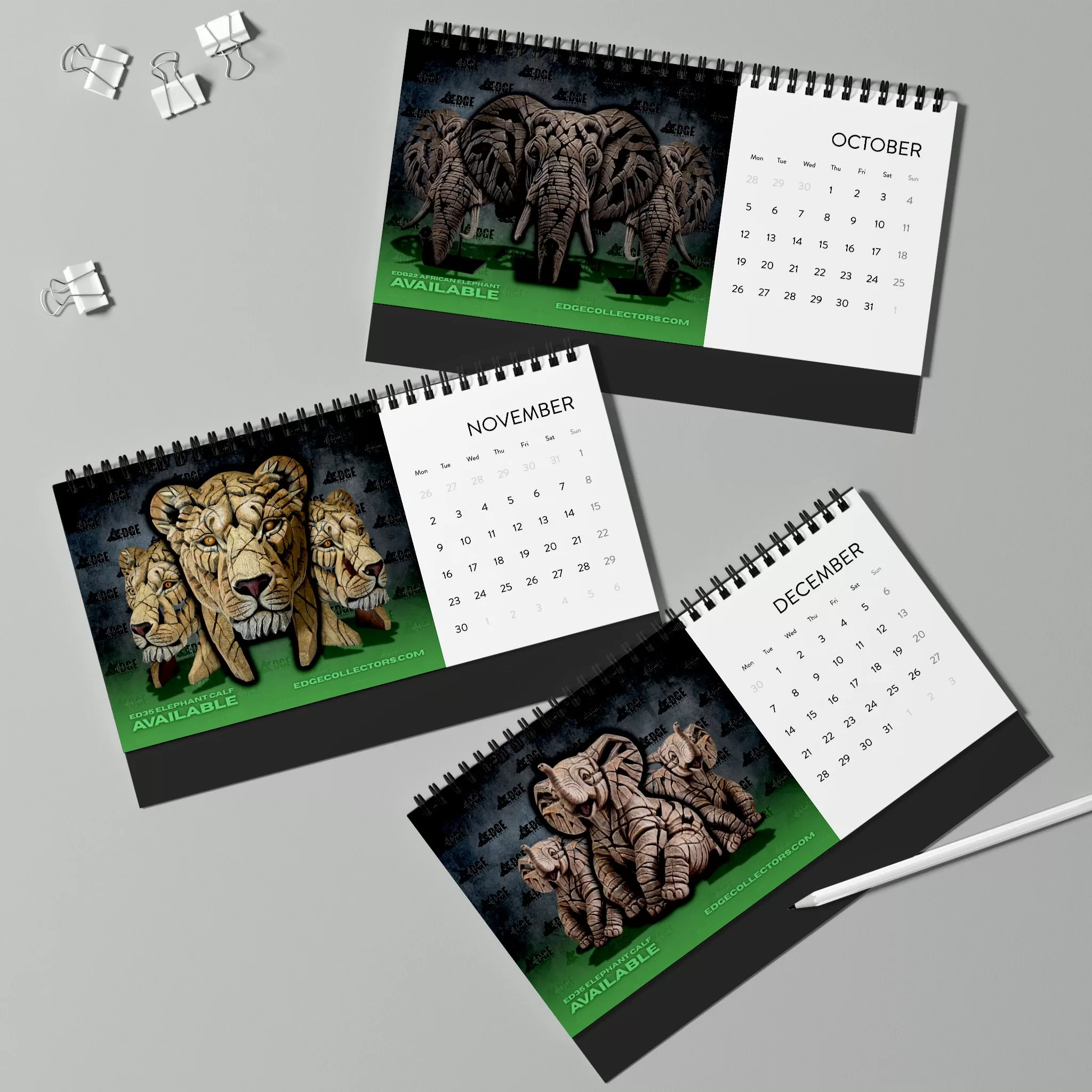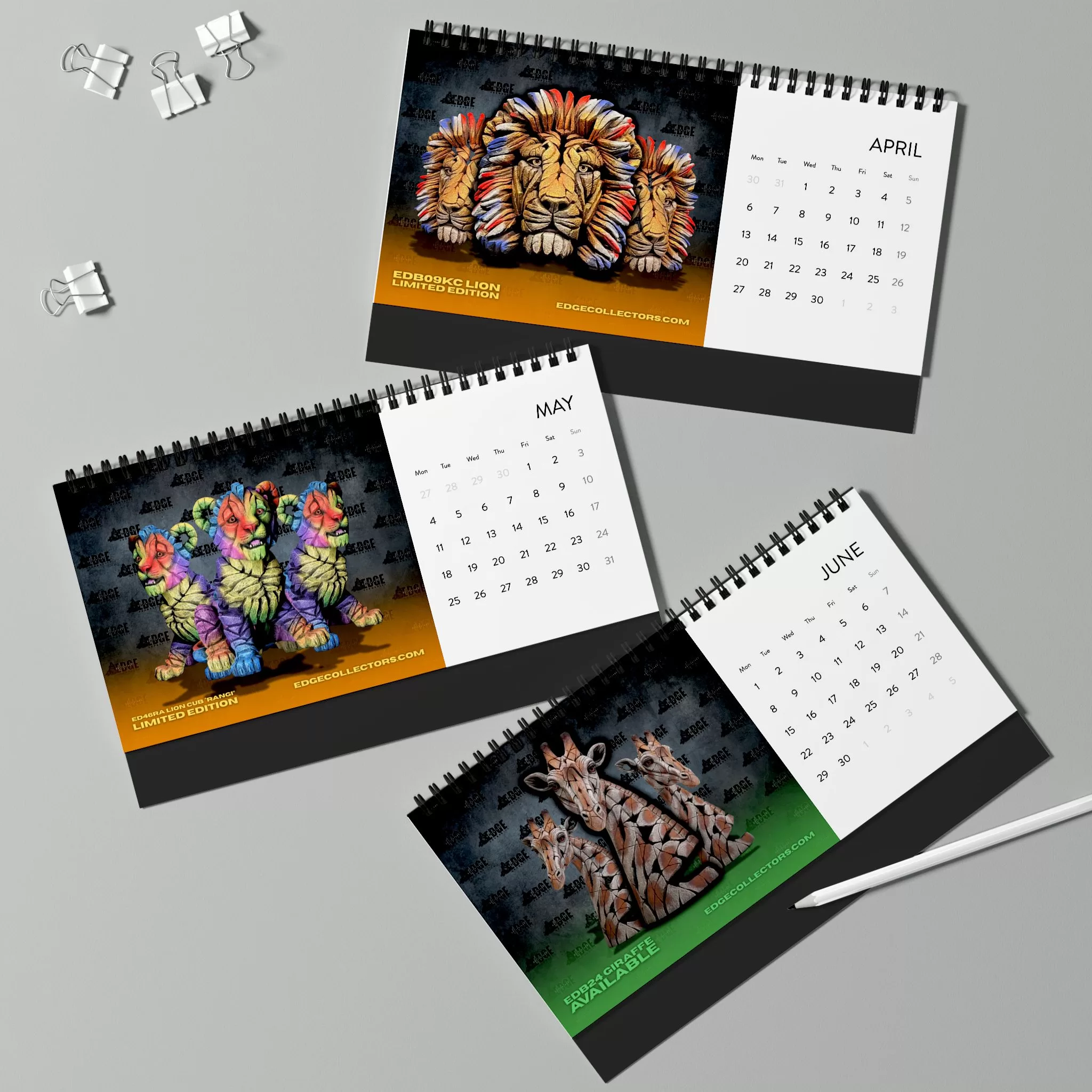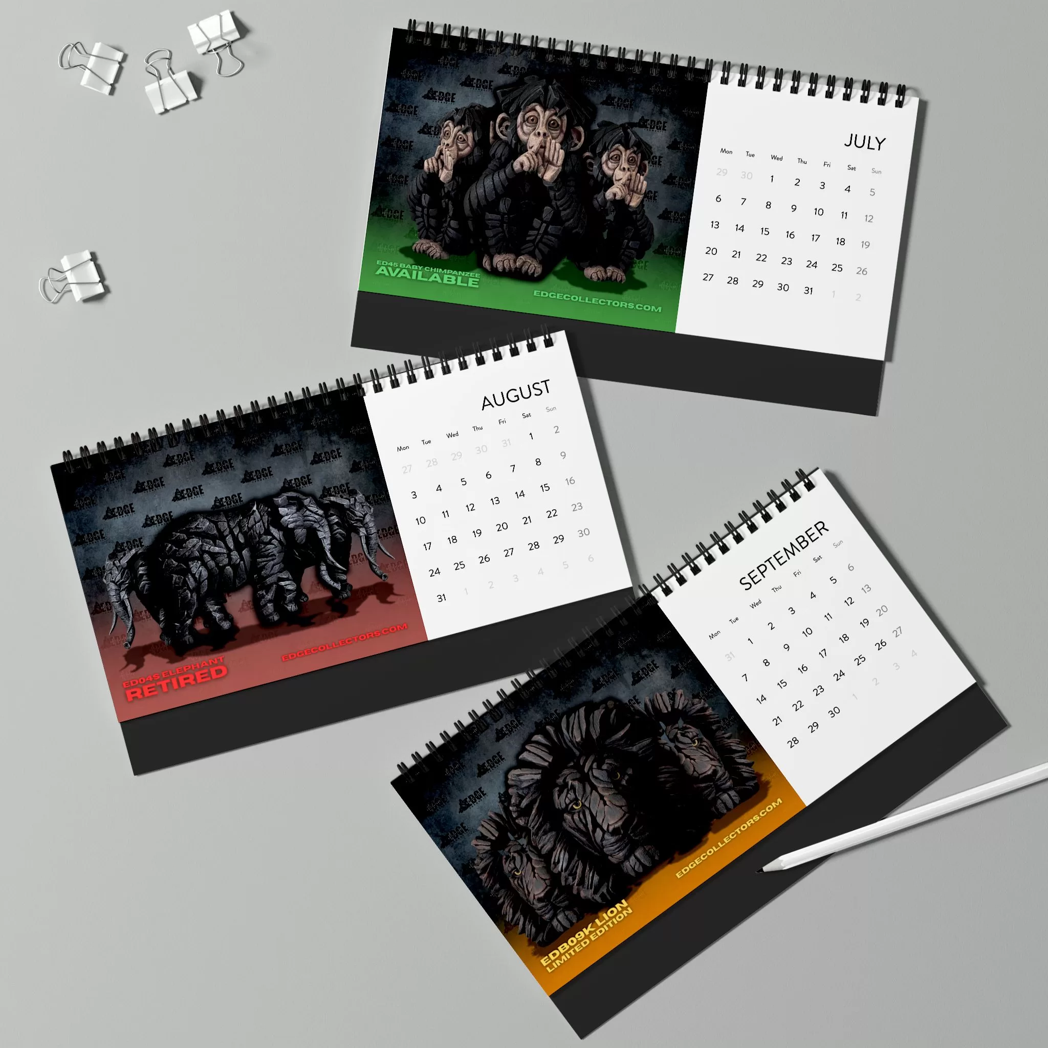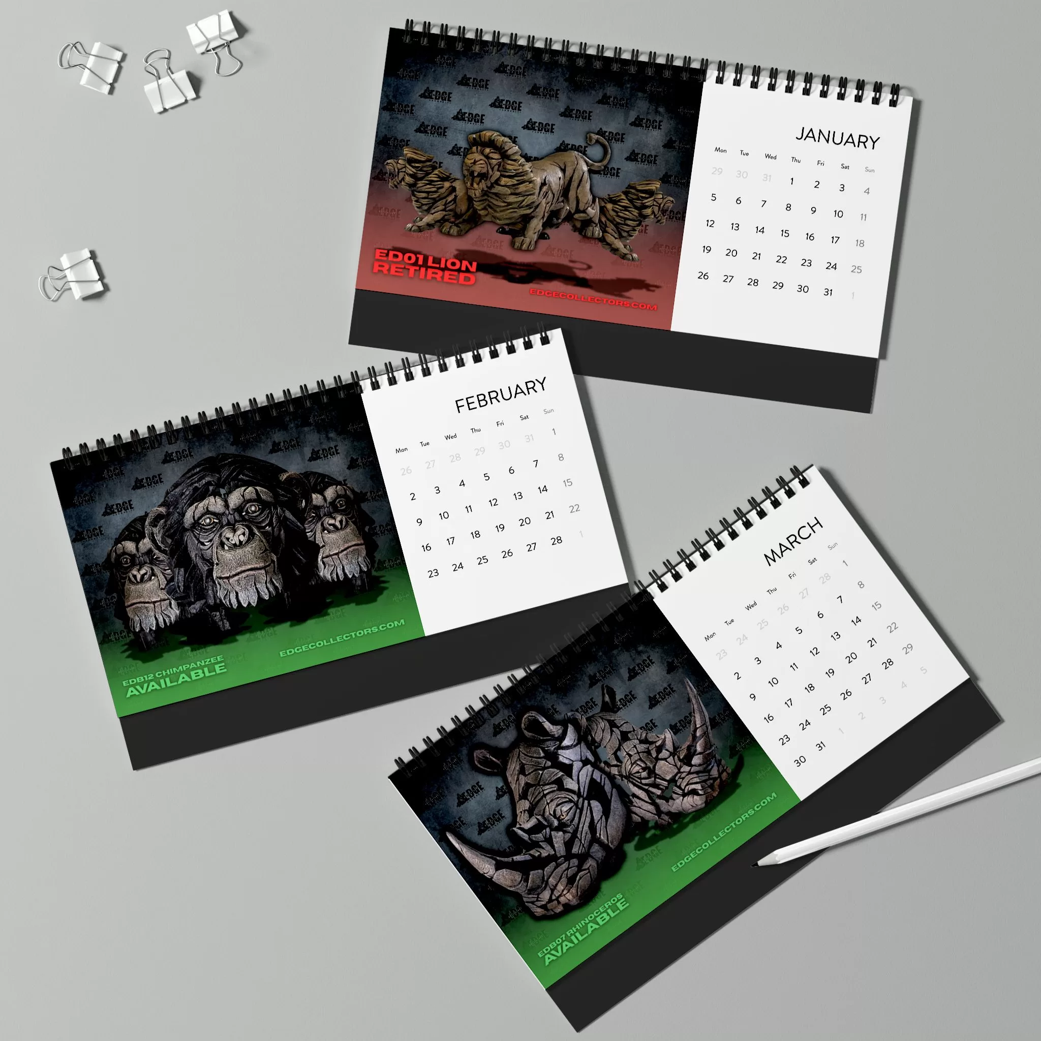 Perfect for collectors and art lovers alike, this calendar combines the power of wildlife with the artistry of Edge Sculpture — a tribute to nature’s most awe-inspiring creatures.