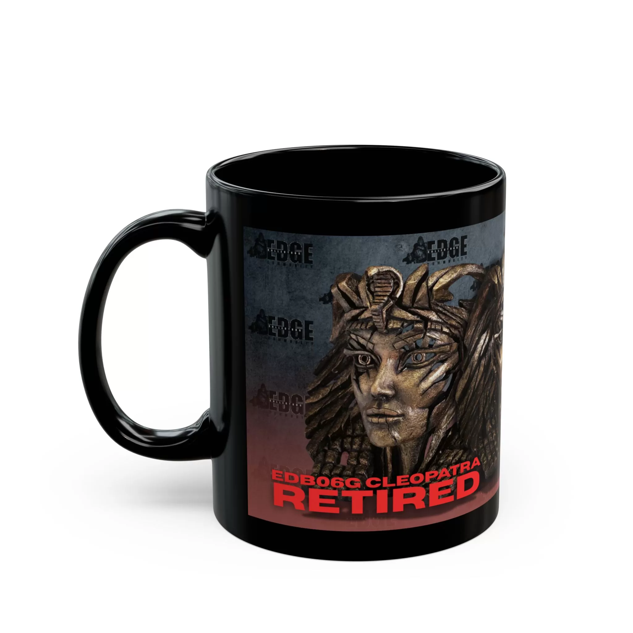 This glossy ceramic mug features a stunning EDB06G Cleopatra – Bust (Golden), created by artist Matt Buckley. Perfect for adults who art, this mug can add a touch of elegance to your morning coffee routine. Ideal for gifting during birthdays, holiday seasons, or special occasions.